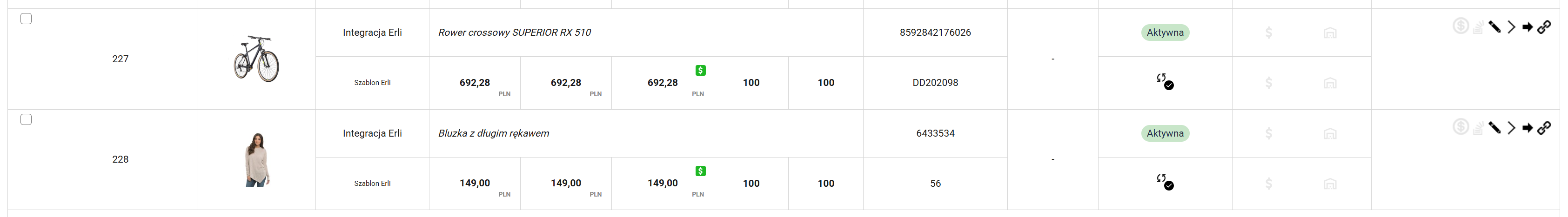 6. Podobnie jak w przypadku zwykłych ofert, poprawnie wystawione oferty wielowariantowe pojawią się w Oferty → Erli i zmienią status na Aktywna.