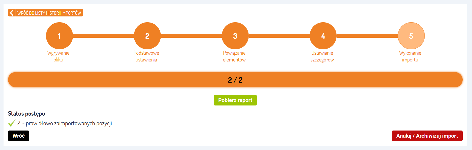 Wskazówka: Zawsze sprawdzaj raport, aby mieć pewność, że wszystkie pozycje zostały poprawnie wczytane.