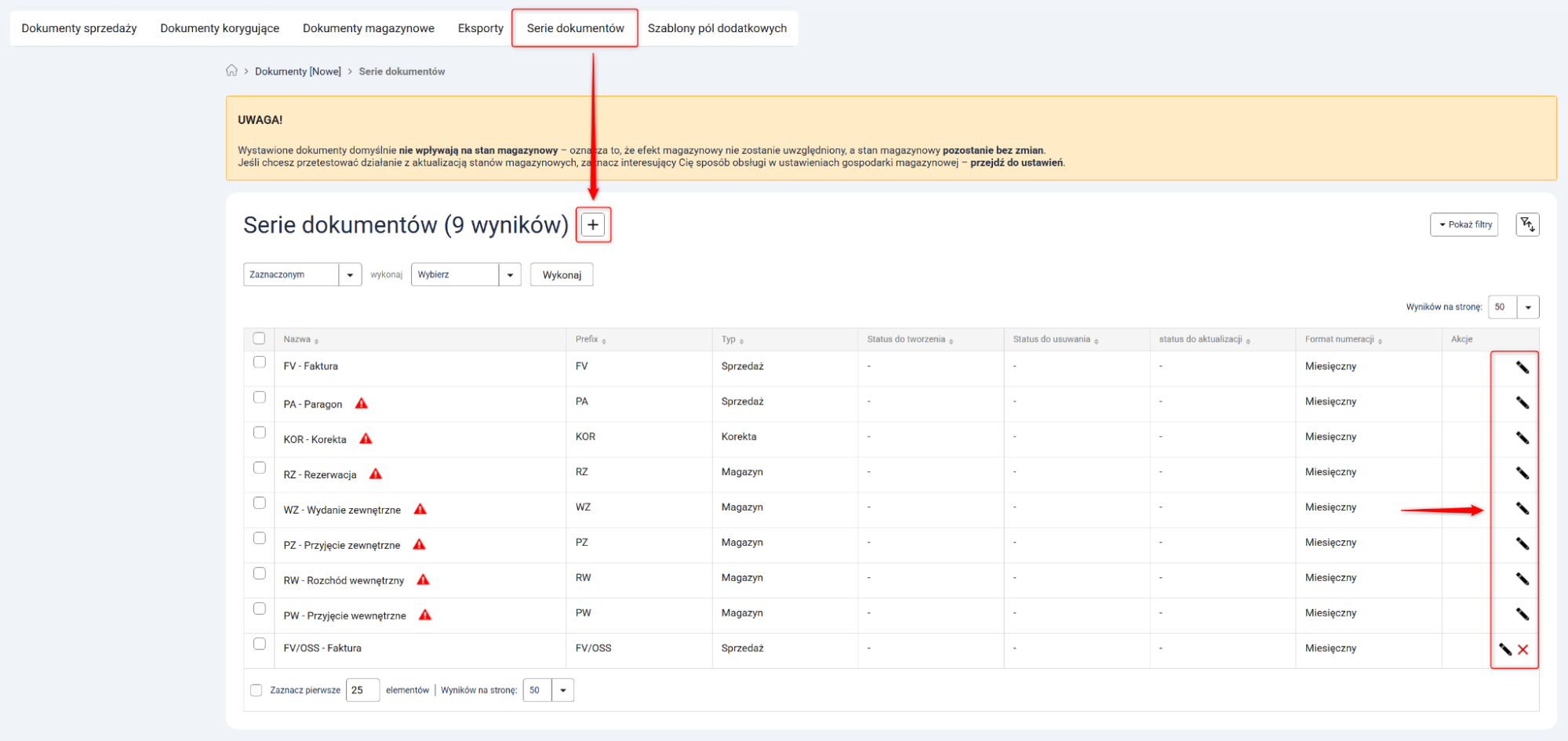 1. Aby utworzyć lub edytować serie dokumentów, przejdź do Dokumenty [Nowe] → Serie dokumentów.