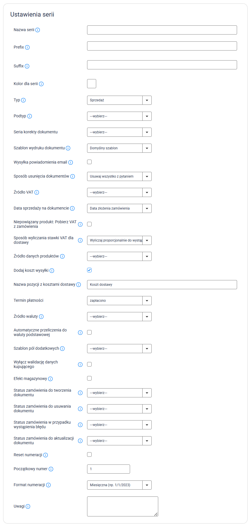 - Format numeracji: Wybierz format numeracji dla serii dokumentu.