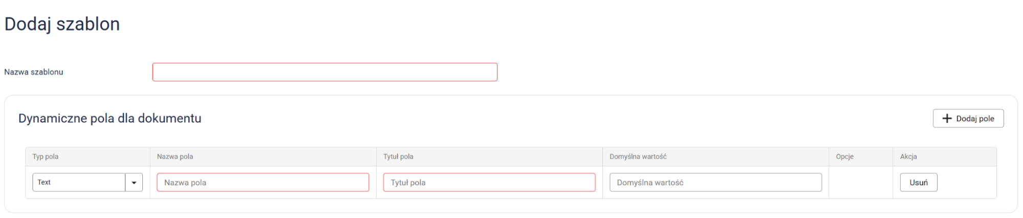 2. Na ekranie zobaczysz formularz nowego szablonu.