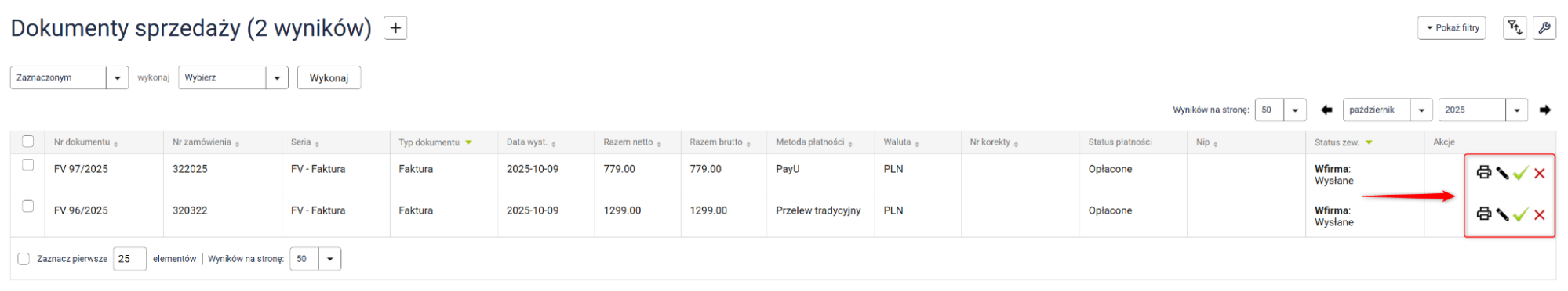 Po skonfigurowaniu serii możesz rozpocząć wystawianie dokumentów sprzedaży. Można to zrobić na dwa sposoby — bezpośrednio z poziomu zamówienia lub z zakładki Dokumenty sprzedaży.