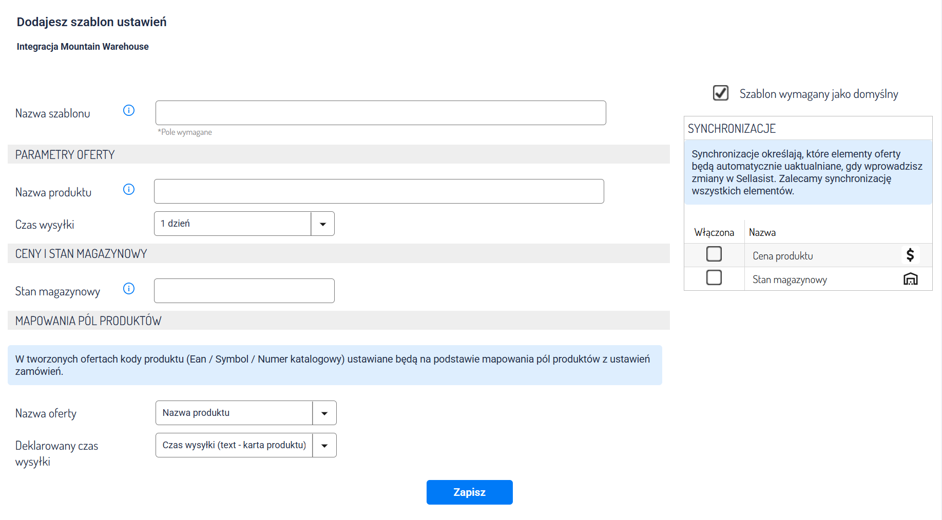 - Nazwa oferty: Mapowanie nazwy z pola Sellasist → Mountain Warehouse.