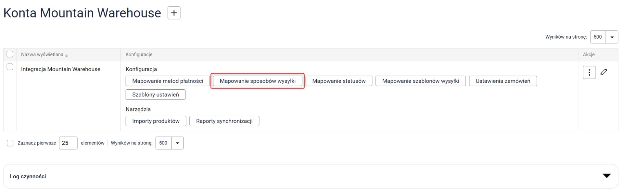 Kliknij przycisk Mapowanie sposobów wysyłki i przypisz wybrane przez siebie sposoby wysyłki z Sellasist do metod wysyłki w Mountain Warehouse.