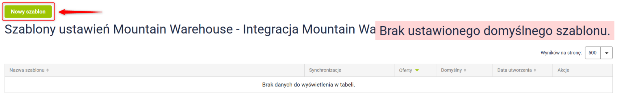 Uwaga: Ten krok jest wymagany przed uruchomieniem importu. Jeśli nie skonfigurujesz przynajmniej jednego szablonu oznaczonego jako Domyślny, import ofert nie będzie możliwy. Szablon domyślny jest automatycznie przypisywany do nowych ofert i aktualizuje ich ustawienia synchronizacji zgodnie z własną konfiguracją.