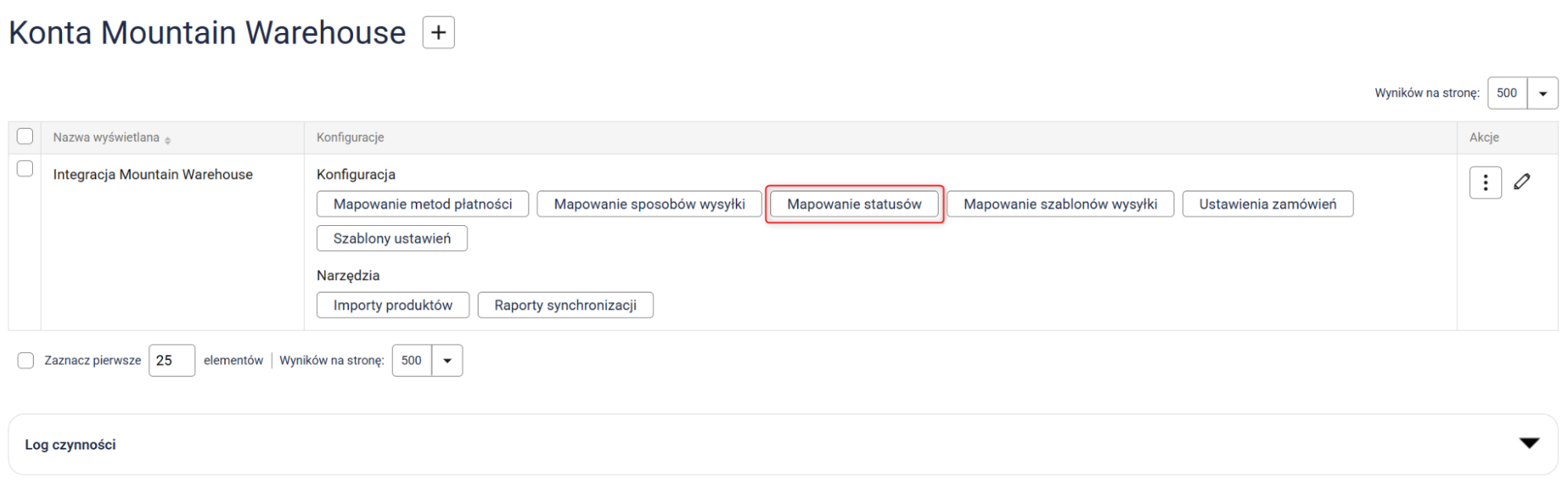 Kliknij przycisk Mapowanie statusów i przypisz statusy z Sellasist do statusów w Mountain Warehouse.