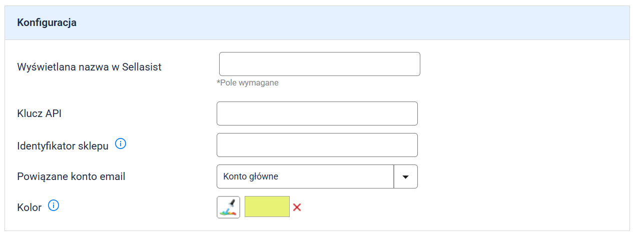 - Wyświetlana nazwa w Sellasist: Nazwa integracji widoczna w panelu Sellasist.