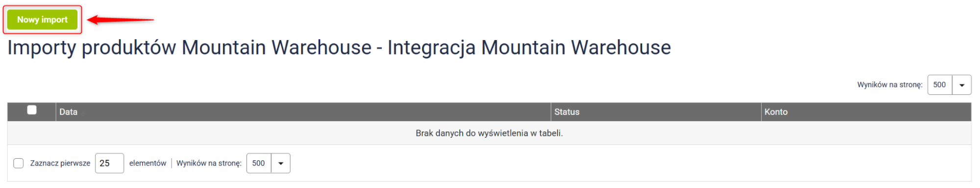 1. Na karcie importów kliknij przycisk Nowy import.