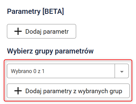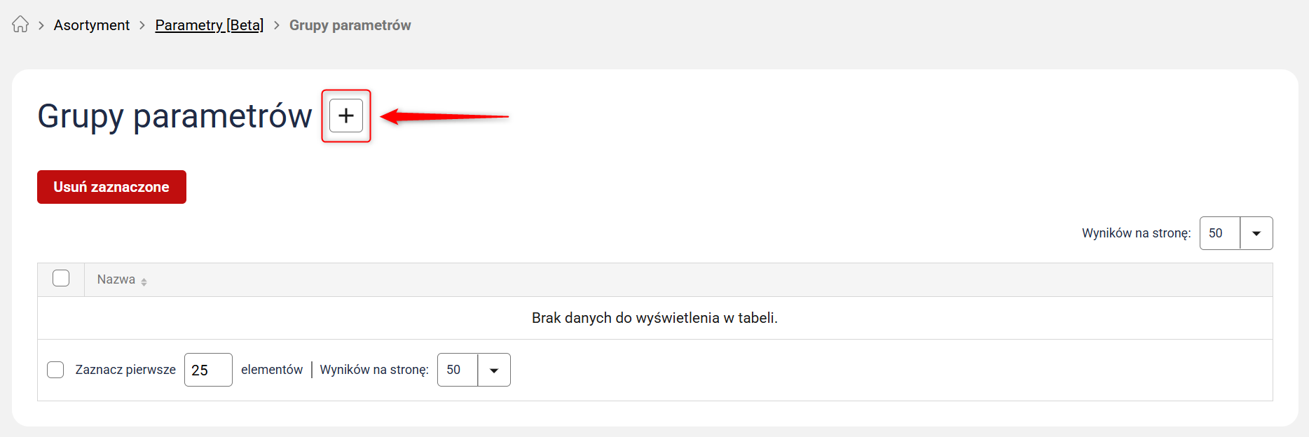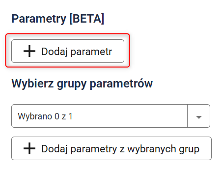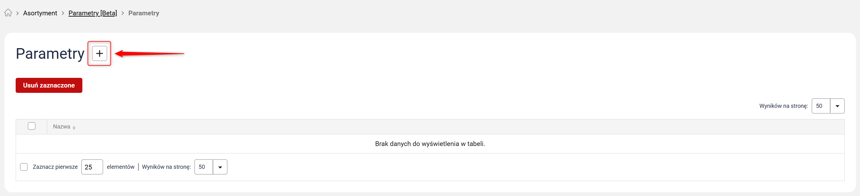 1. W panelu głównym przejdź do Asortyment → Parametry [Beta] i w zakładce Parametry kliknij przycisk z ikoną plusa.