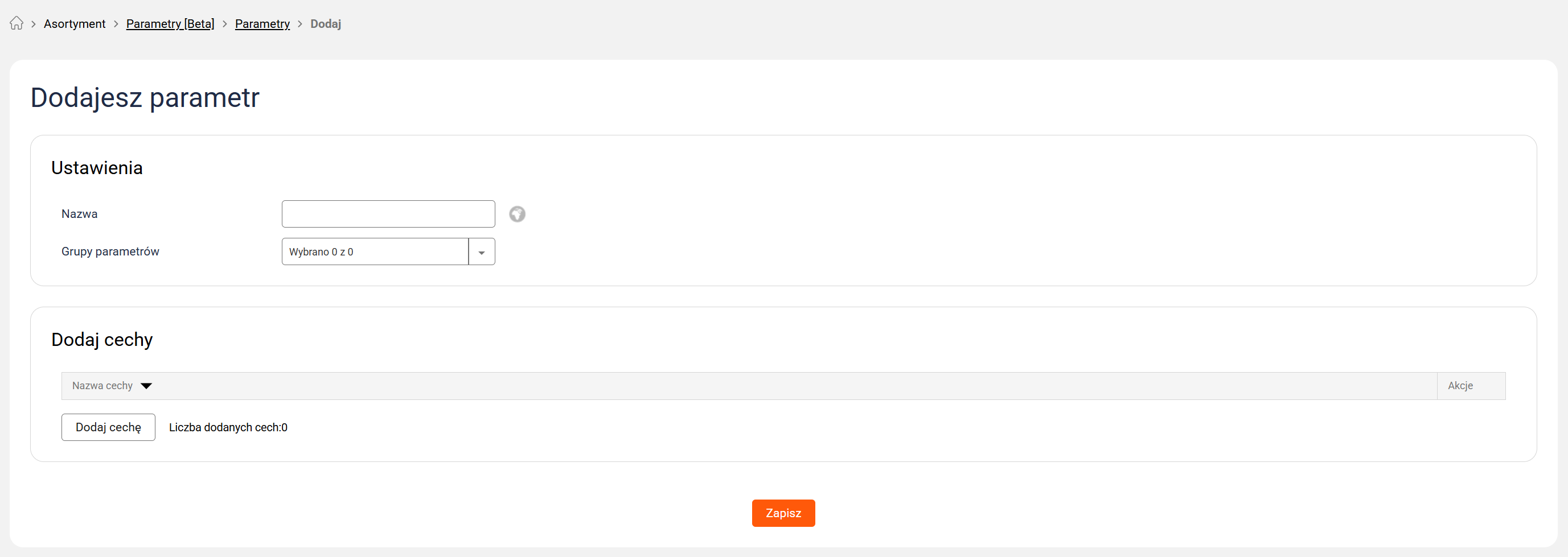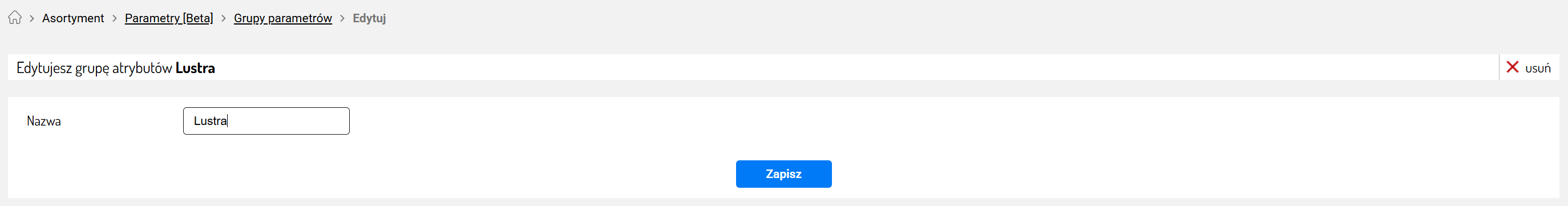 2. Na ekranie zobaczysz formularz tworzenia nowej grupy parametrów. Wpisz nazwę dla nowej grupy i kliknij przycisk Zapisz.