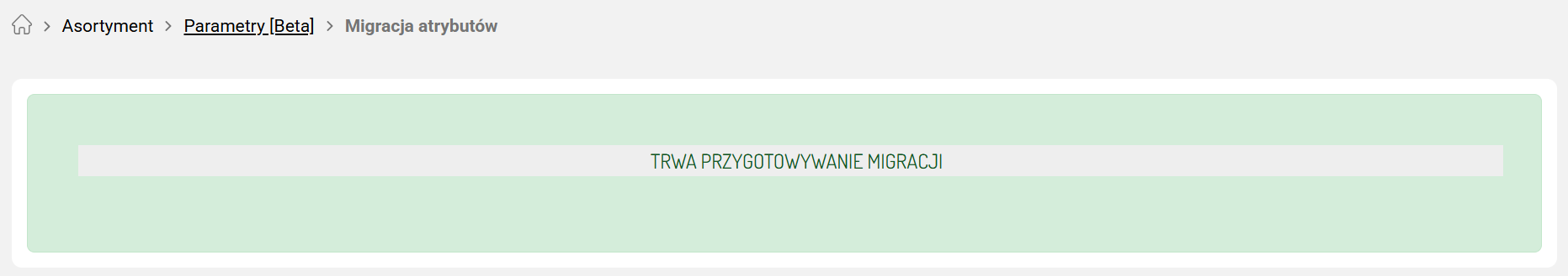 3. Po rozpoczęciu migracji, na ekranie zobaczysz poniższy komunikat. W zależności od ilości atrybutów, proces może potrwać od kilku do kilkunastu minut.