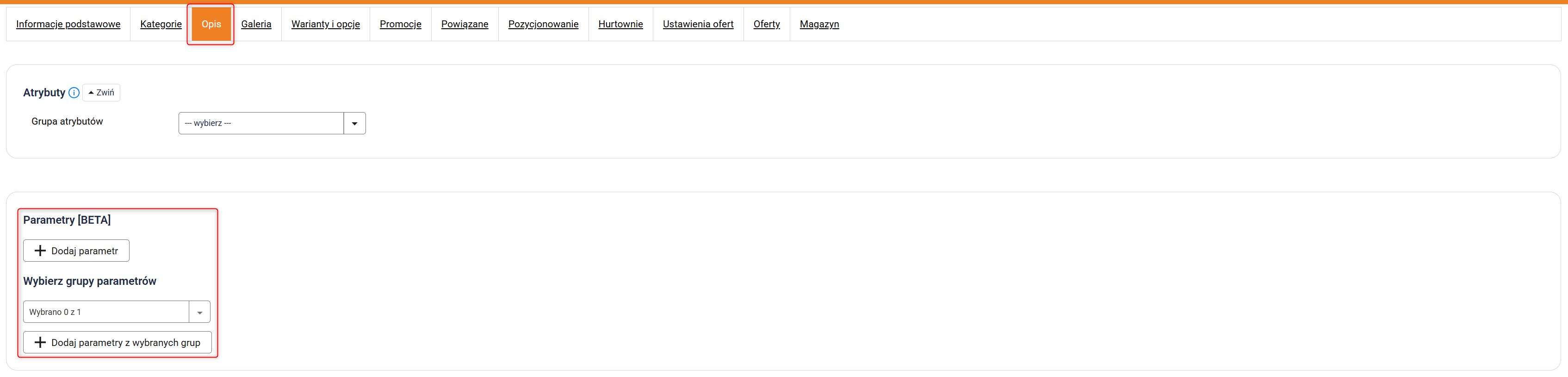 Parametry możesz przypisywać do konkretnych produktów bezpośrednio na karcie danego produktu.