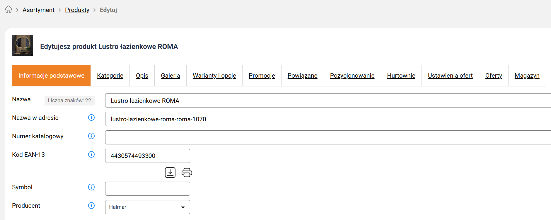1. W panelu głównym przejdź do Asortyment → Produkty i otwórz kartę edycji wybranego produktu.
