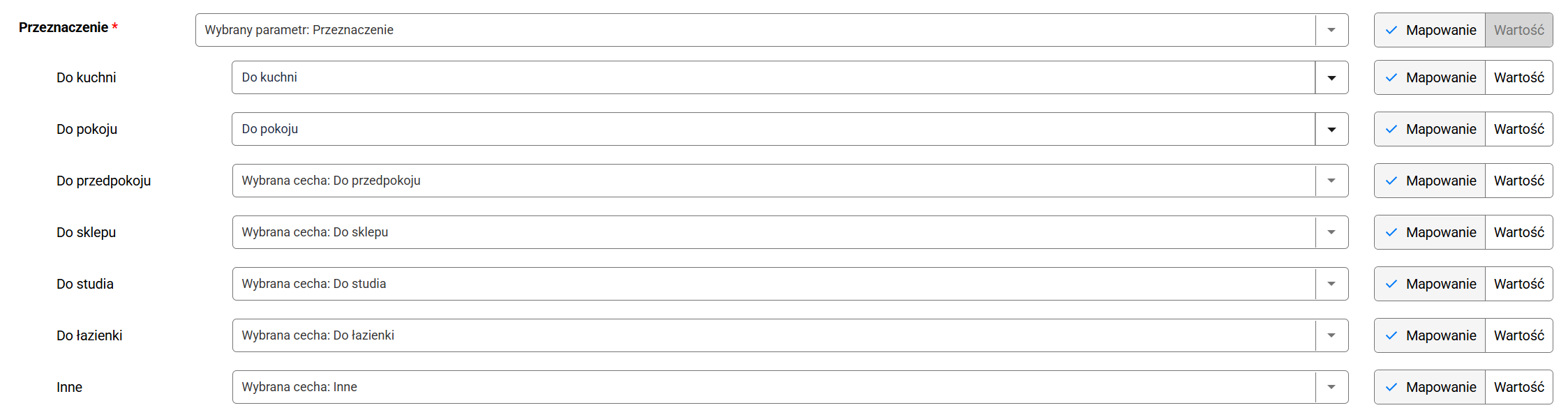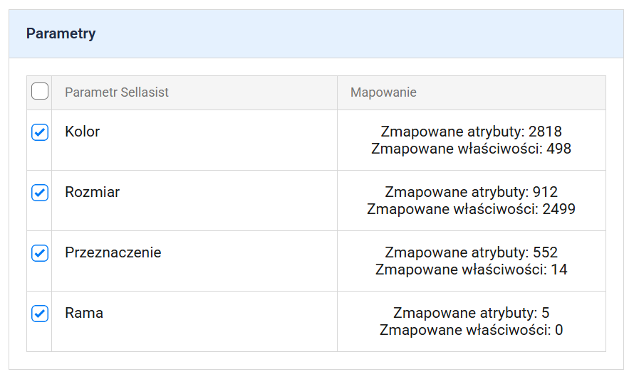 Automatyczne mapowanie parametrów przyspiesza proces wystawiania ofert. Jeśli nazwy parametrów w obu systemach są jednakowe, powiązanie nastąpi automatycznie. W przypadku różnic w nazewnictwie (np. Kolor vs. Barwa), konieczne będzie ręczne przypisanie.