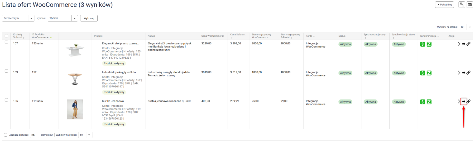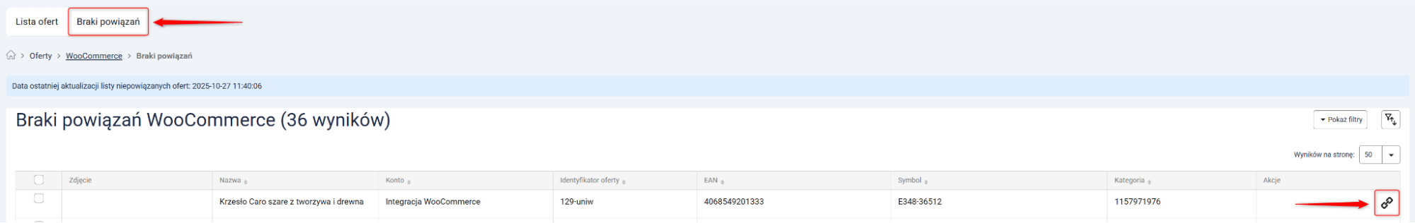 2. Na liście niepowiązanych ofert znajdź interesującą Cię pozycję i kliknij przycisk Powiąż (kolumna Akcje).