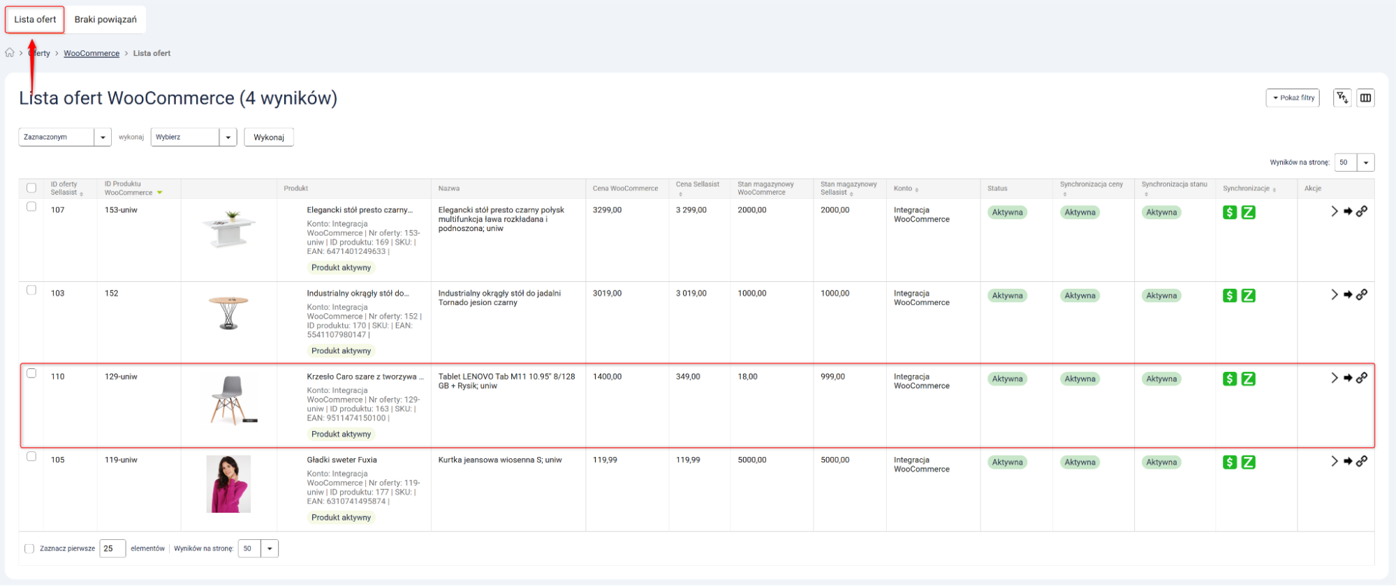 5. Gdy wrócisz na listę ofert, znajdziesz tam nowo powiązaną ofertę.