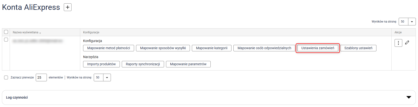 1. Przejdź do Integracje → Wybrana integracja → Ustawienia zamówień.