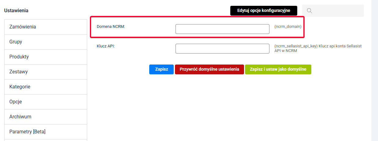 6. Następnie w NCRM uzupełniamy domenę sellasist i zapisujemy.