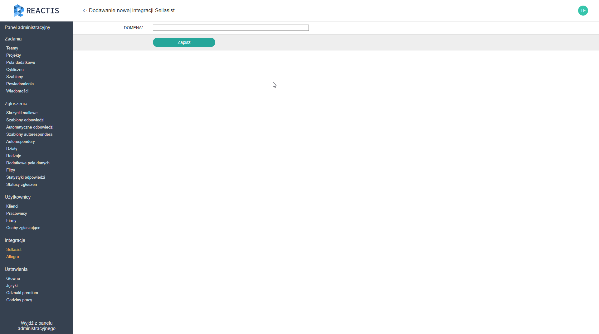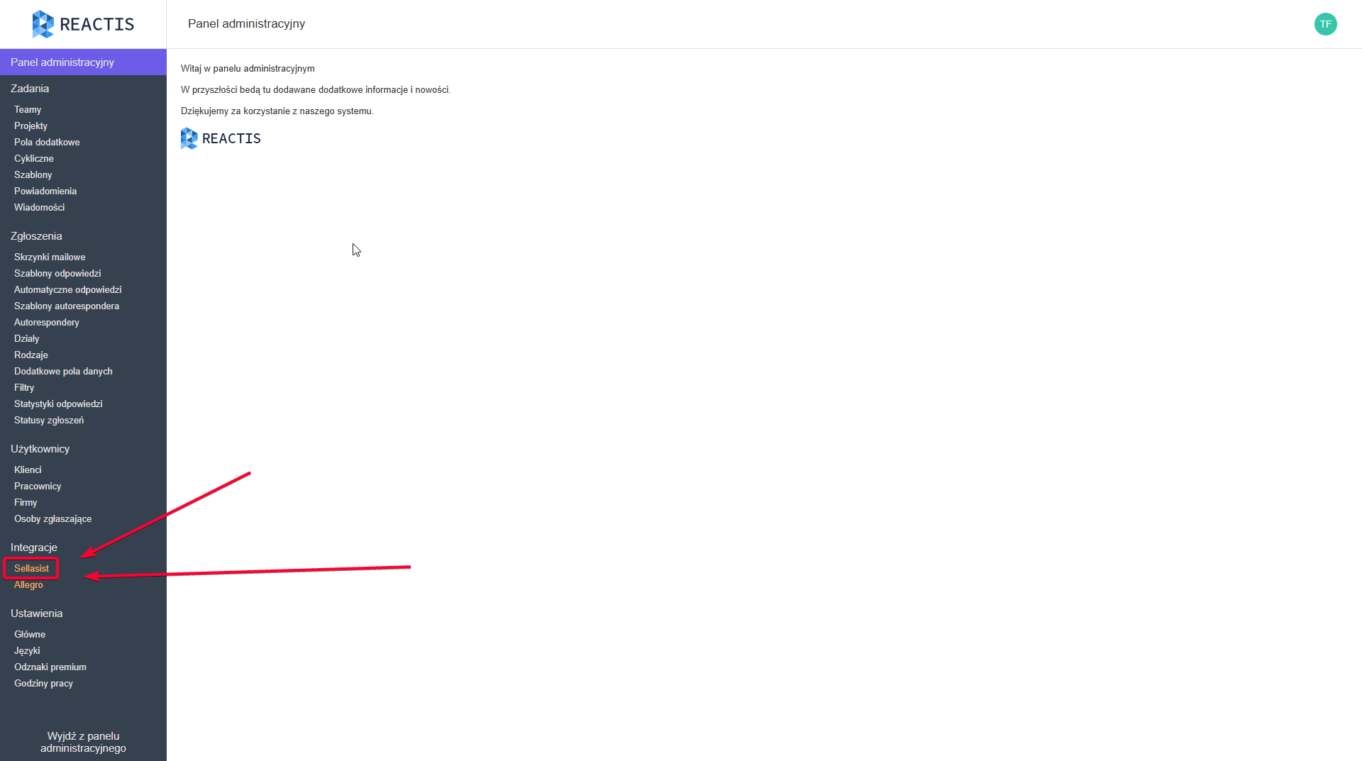 By zintegrować konto Sellasist z Reactis: