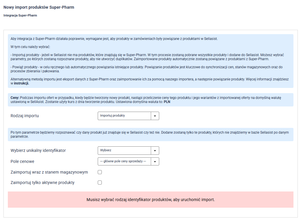 • Zaimportuj wraz ze stanem magazynowym: Powiąż produkty i pobierz ich stan magazynowy z Super-Pharm do Sellasist.