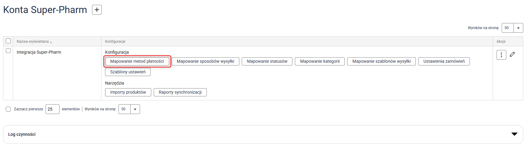 Kliknij przycisk Mapowanie metod płatności i przypisz metody płatności z Sellasist do odpowiadających im metod w Super-Pharm.