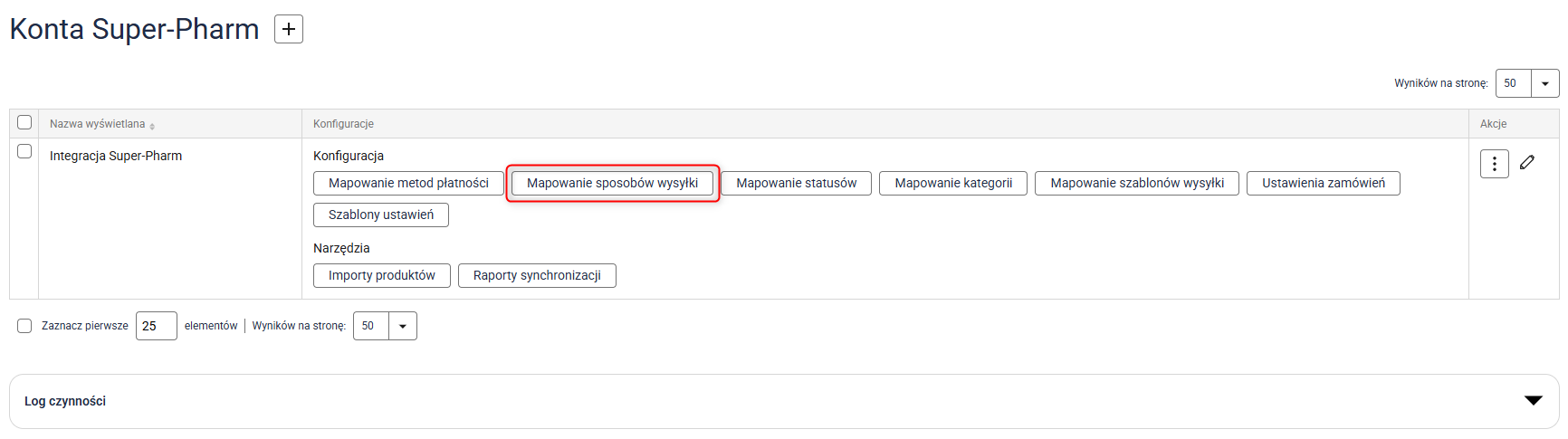 Kliknij przycisk Mapowanie sposobów wysyłki i przypisz wybrane przez siebie sposoby wysyłki z Sellasist do metod wysyłki w Super-Pharm.