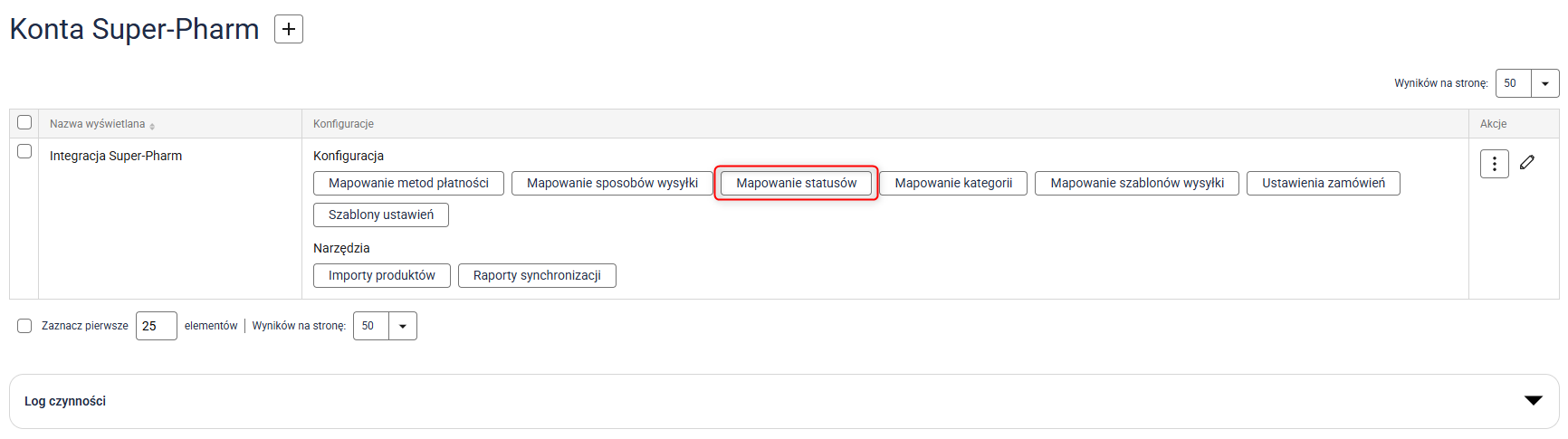 Kliknij przycisk Mapowanie statusów i przypisz statusy z Sellasist do statusów w Super-Pharm.