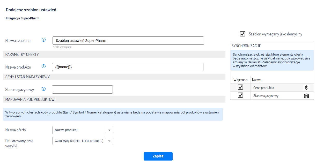 • Nazwa oferty: Mapowanie nazwy z pola Sellasist → Super-Pharm.