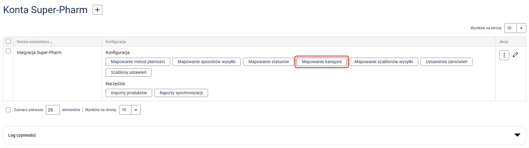 Kliknij przycisk Mapowanie kategorii i przypisz kategorie z Sellasist do kategorii w Super-Pharm.