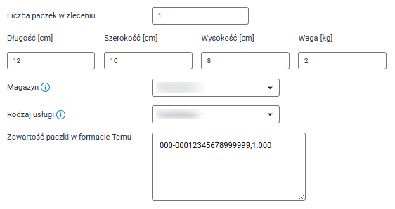 Uwaga: Aby system automatycznie uzupełniał zawartość paczek na podstawie produktów w zamówieniu, w polu Zawartość paczki w formacie Temu wpisz: {temu_content}. Jeśli Twój szablon posiada wiele paczek, wprowadź tę zmienną wyłącznie w polu pierwszej paczki.