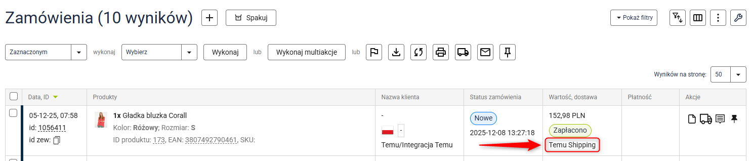5. Od teraz łatwo zidentyfikujesz wybraną metodę dostawy przy konkretnym zamówieniu.