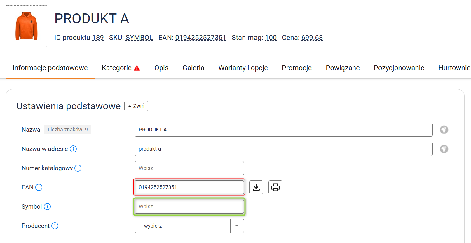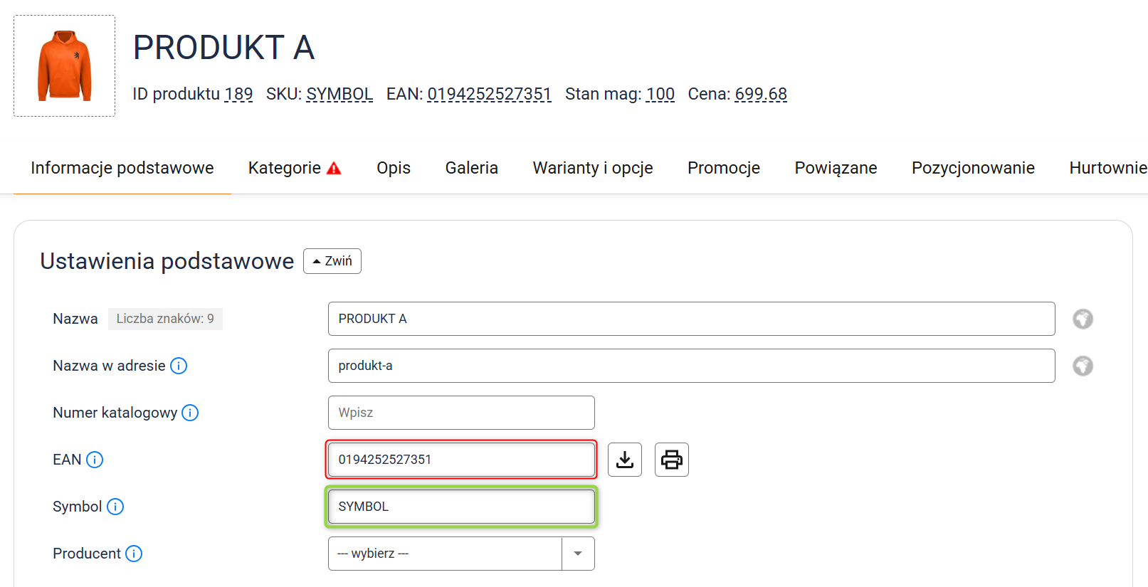 Pamiętaj! Jeżeli zaznaczysz jednocześnie obie opcje: "Przekazuj Symbol do pola sygnatura" oraz "Przekazuj EAN do pola Sygnatura" to pierwszeństwo ma wartość z pola Symbol.
