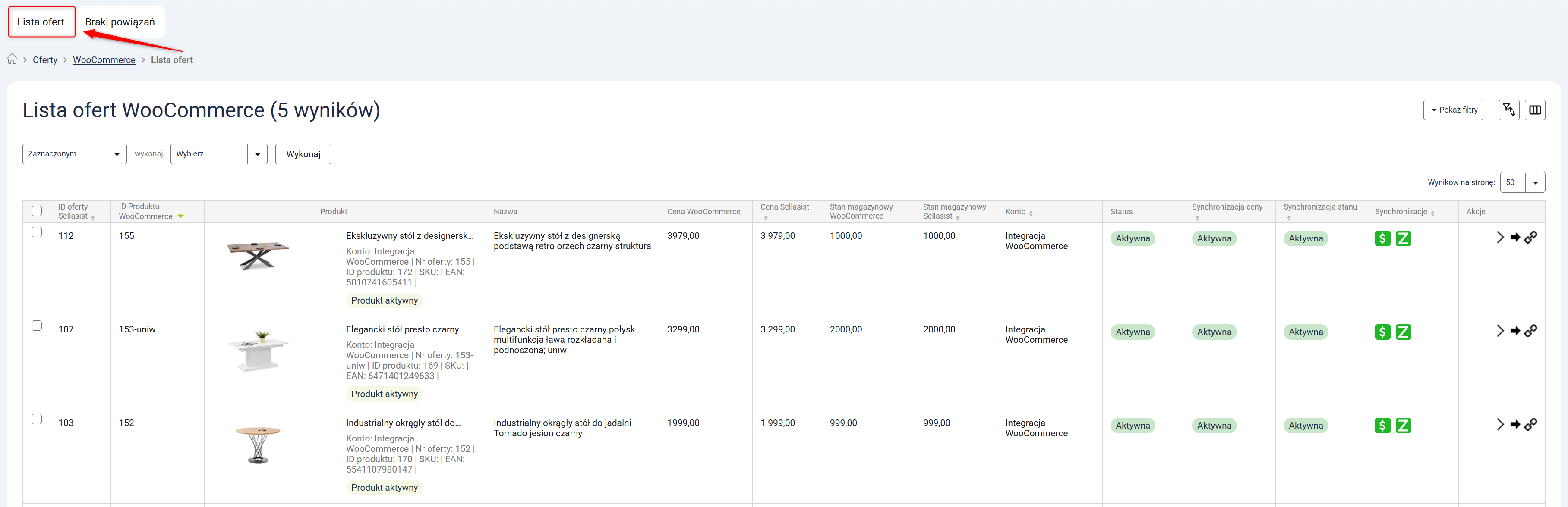 W tym miejscu znajduje się lista wszystkich ofert pobranych do Sellasist z danego marketplace, wraz ze wszystkimi podstawowymi informacjami.